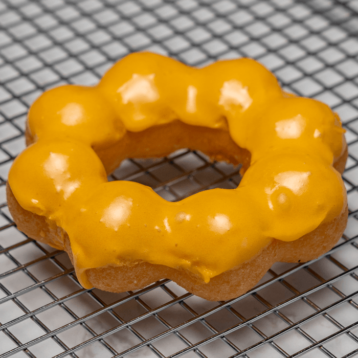 Mochi donut covered in mango flavored icing