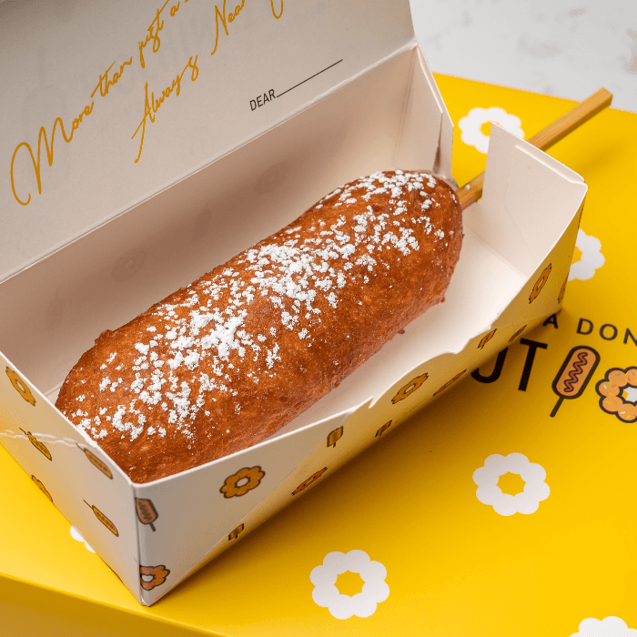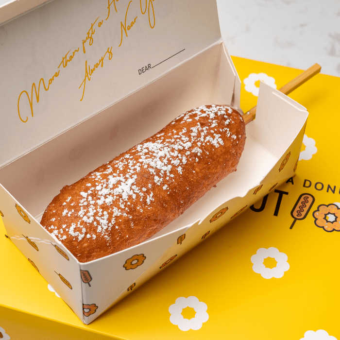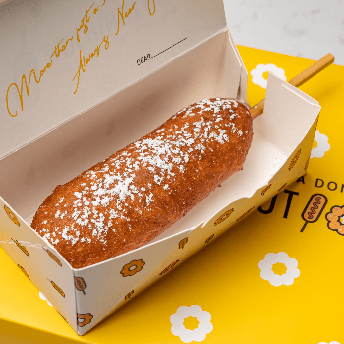 Half hot dog, half mozzarella coated in rice flour batter, deep fried to perfection.