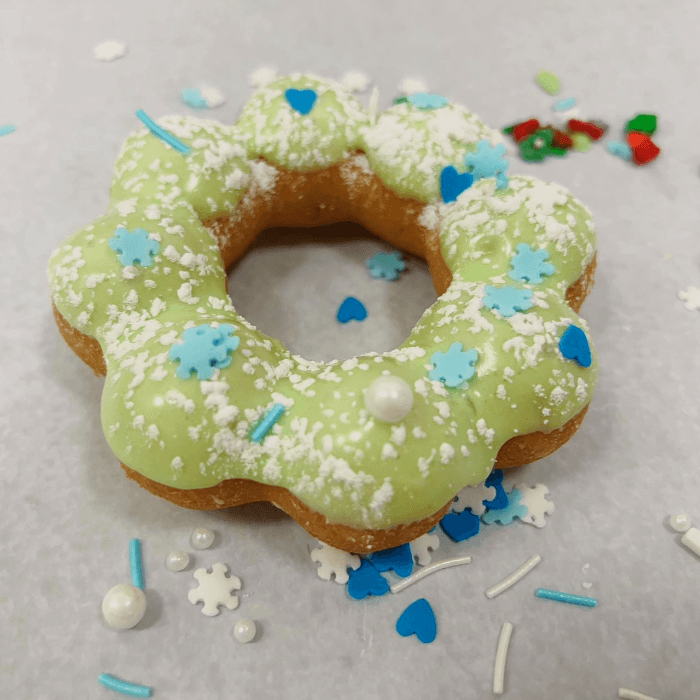 Mochi donut topped with honeydew flavored icing